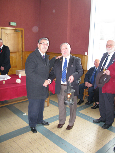 After the church service, procession and wreath laying, a welcome drink and 'nibbles' were offered at the Marie, which as mentioned above has had a make over. There are now new steps and a ramp to the entrance and the large reception room on the first floor has nice new windows. A lovely surprise for the Eastry guests was the gift of an early 'Hurricane' style lamp presumed to be a relic of the First World War. This generous gift from René Bilhaut will have a prominent position in our 'Twinning Cabinet' in Eastry village hall. For the 'Combattants Anciens' of Longpré, Tom had brought a gift of 6 china plates with views of Eastry, donated by the Eastry branch of the RBL; they were presented at the reception and gratefully received. The 'formal' part of the day was concluded and from the Marie a contingent from Longpré including those of us from Eastry, went to the neighbouring village of Hangest and the 'Restaurant du Canard' for a fabulous 7(?) course meal and dancing to the accomplished playing of 'Mr Accordion' (sorry, I don't know his name). Yet again I miscalculated the departure time (allowing 1 hour 30 minutes to the tunnel, and the mandatory 30 minutes booking in time prior to departure, I'd booked the 19:20 shuttle but should have gone for one at ~20:00 or 21:30. I'm writing this as an aide memoire for next year)! A very meaningful day was enjoyed by us all, and Tom Walden, the representative from the RBL, for whom it was his first trip to Longpré, and who did a sterling job as standard bearer, was more than impressed by the whole thing. As the 'new boy' he was quickly singled out for a few dances once the accordionist started. Copies of the photographs available on request! Present from Eastry. Terry James, Nick Smith, Bill Clague, TomWalden Mike Potter, Jan |