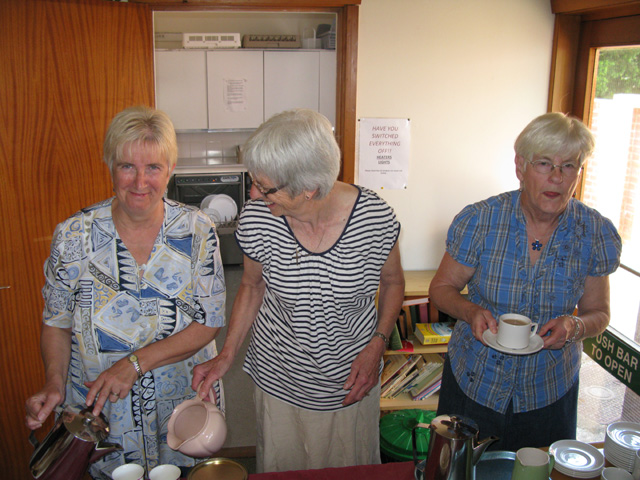 the church hall where a busy team of ladies Liz, Rosemary and Terri