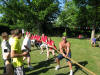 After lunch, the food stalls and entertainment and annual tug-of-war began on the village green. This event had thoughtfully been arranged to coincide with the visit from Longpré and offered another view of Eastry life. The French put two teams into the tug-of-war, like the bowls they gave a good account of themselves, one of the teams coming second. After all that exertion it was nice to have a rest and watch the Morris dancers and listen to the musicians play before heading home to prepare for the evening.