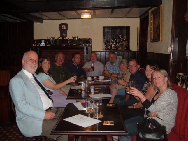 In the saloon bar (previously the public bar) of the newly refurbished Five Bells. From left to right: Bill Clague (Treasurer), Pauline Marsh, Robin Goldup (Membership), Nick Kenton (Chairman, Eastry Parish Council), Terry James (Chairman), Nick Smith (Vice-Chairman), Peta Goldup (Secretary), Phil Smith, Wendy Smith (Vice-Secretary), Teresa Lane.